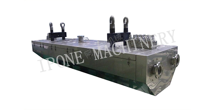 螺桿擠出機---->過濾器---->計量泵---->加熱系統(tǒng)---->熔噴箱體(卡森)---->成網(wǎng)機---->收卷